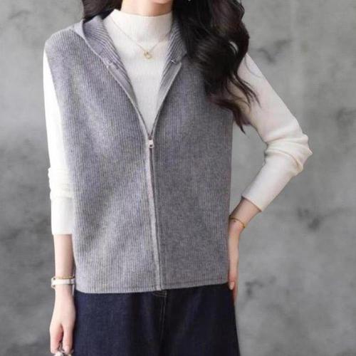 [다잇템] 여성 베스트 울니트 후디 슬리브리스 골지 베이직핏