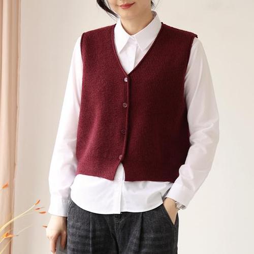 [옷자락]여성 잔골지 레귤러핏 브이넥 니트 베스트 조끼