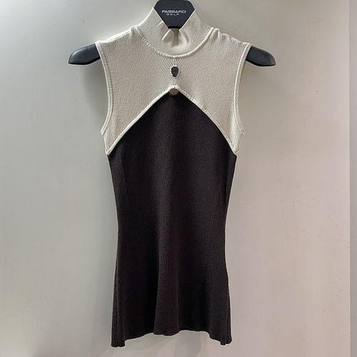 [파사디골프]컬러블럭 앞트임 모크넥 니트 나시 티셔츠 브라운 여성 P25MKS392X