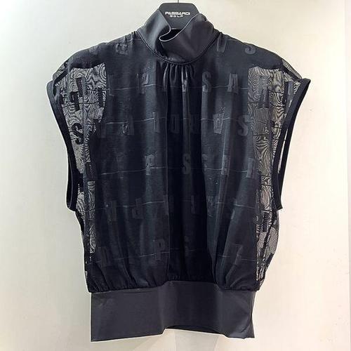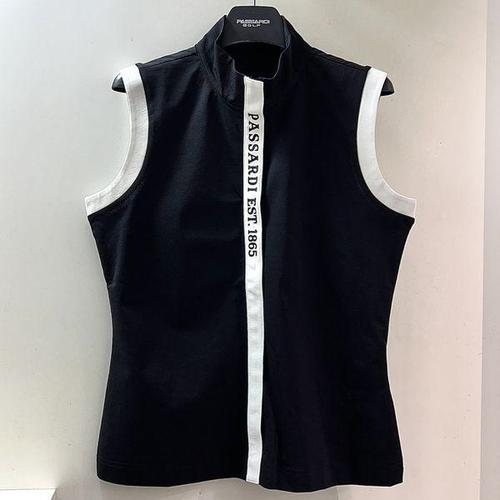 [파사디골프]시스루 인타샤 모크넥 슬리브리스 나시 니트 티셔츠 블랙 여성 P25MKS391X