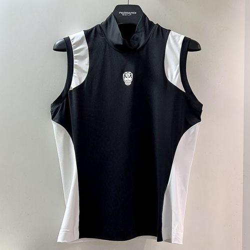 [파사디골프]컬러블럭 앞트임 모크넥 니트 나시 티셔츠 블랙 여성 P25MKS392X