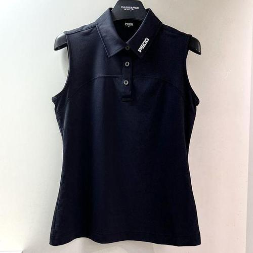 [파사디골프]세로줄 트리코트 Y에리 민소매 카라 티셔츠 블랙 여성 P25MTL189X