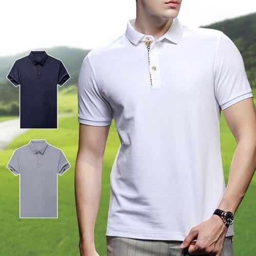 남성 여름 골프웨어 골프 상의 카라 배색 반팔 티셔츠 190523M37