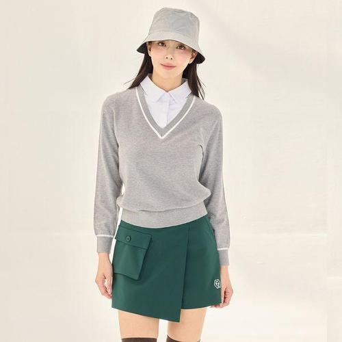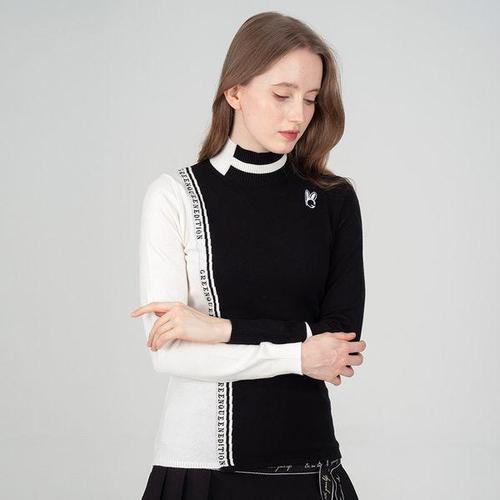 [지니골프]사이드 투톤 배색 반목 니트 여자골프웨어