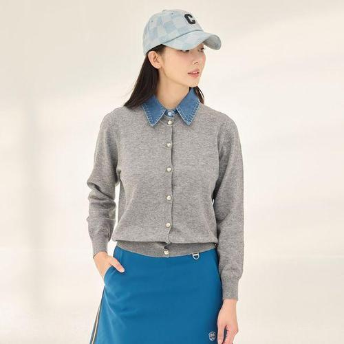 [제이투제이]여성골프웨어 데님카라 포인트 니트가디건
