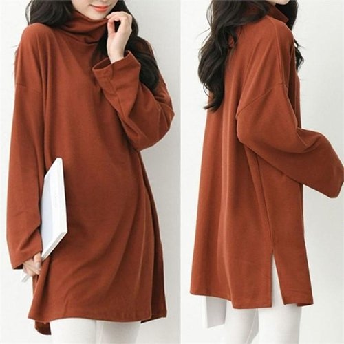 TEMU 봄과 가을 여성용 단색 루즈핏 긴팔 라운드 넥 롱 티셔츠