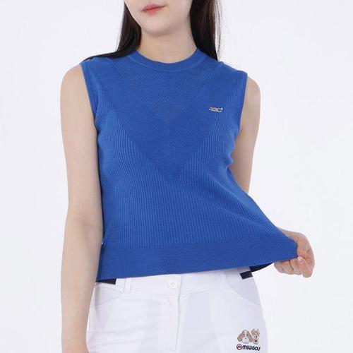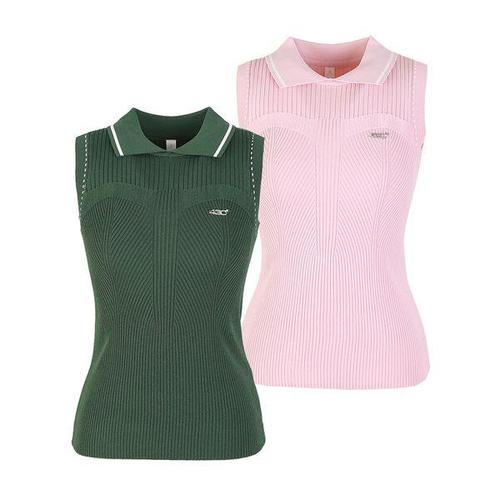 럭스골프 여성 오픈카라 배색 펀칭 민소매 니트셔츠 LB25M508W