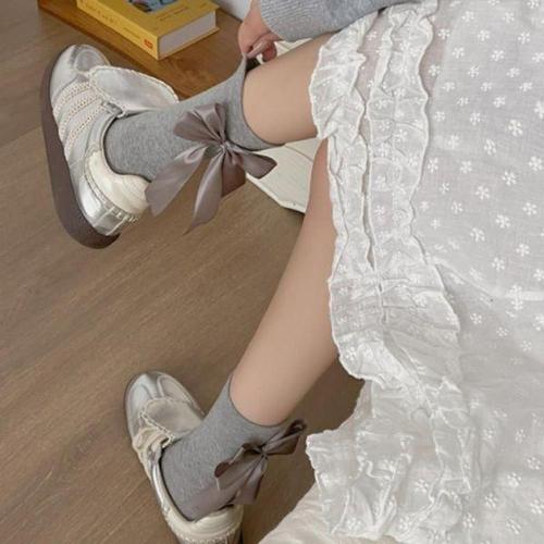 [에이치플러스몰]여성 데일리 코어 리본 골프 중목 스포츠 양말 삭스