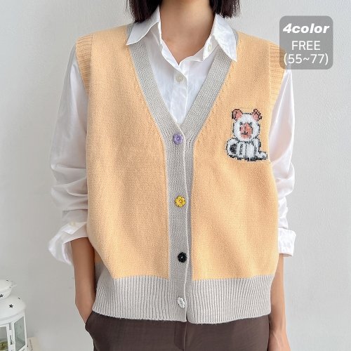 FOCUS 곰돌이자수라운드넥니트가디건 PBBF5S1KC4511