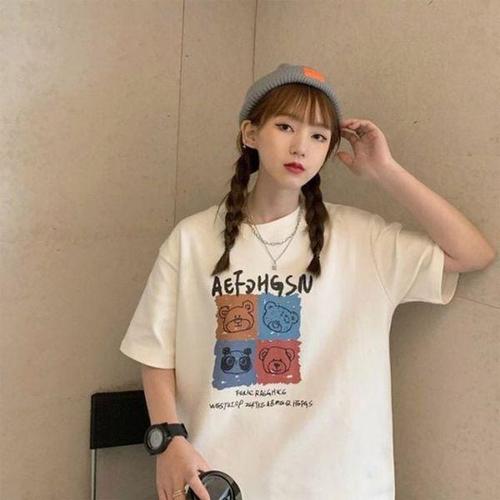 [에이치플러스몰]학생 인기 곰돌이 귀여운 반팔티셔츠 감성 캐주얼 프