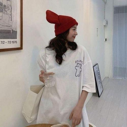 [에이치플러스몰]루즈핏 여름 여성 반팔 레터링 곰돌이 오버핏 티셔츠