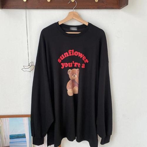 여성 귀여운 곰 프린트 가을 오버사이즈 후드 티셔츠