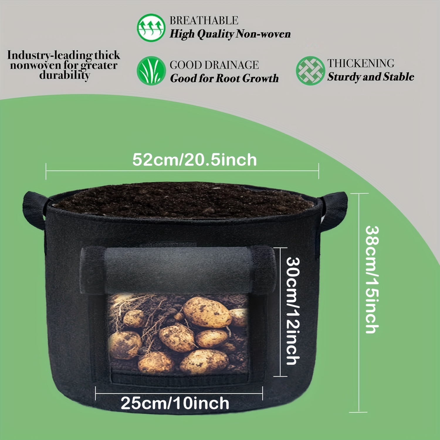 TEMU 6개 묶음 20갤런 감자 재배 가방용 패브릭 | 부직포, SPONDWILD 브랜드, 플랩 포함, 실내외 사용에 적합