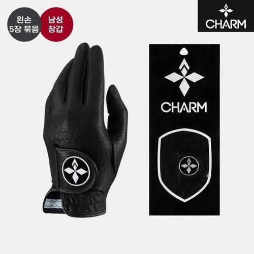 [기타]5장패키지2024 참 CHARM 합피 극세사 골프장갑블랙남성용/왼손착용 한치수 작게 제작됨
