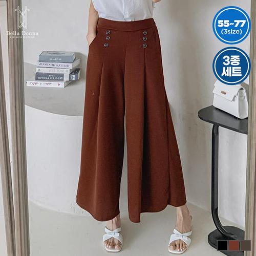 3종세트 벨라도나 여성 6버튼 디테일 A라인 치마바지 와이드팬츠 55-77 BLDN2512SP3