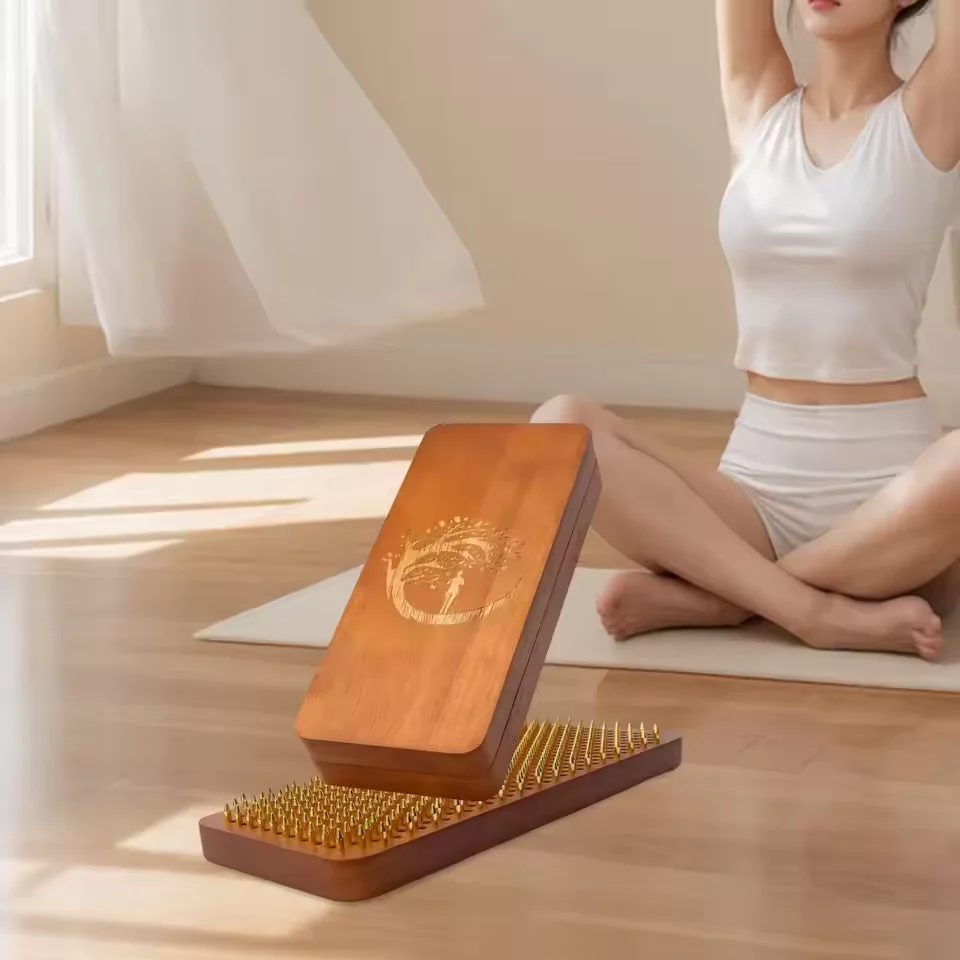 나무 발 마사지 보드 나무 요가 보드 침술 발 마사지 천연 보드 초보자용 구리 못 보드