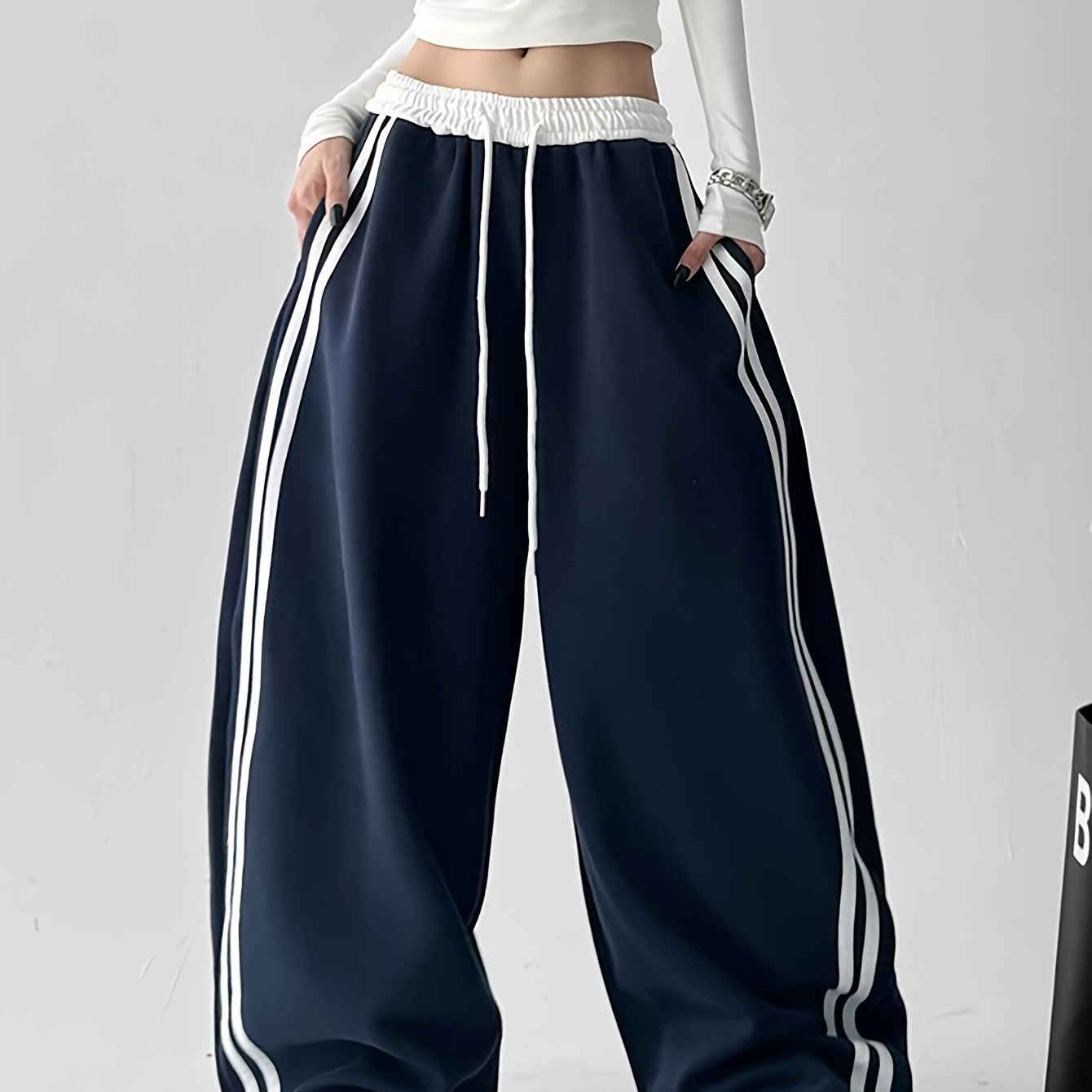TEMU 여성 캐주얼 컬러 블록 팬츠, 사이드 패치워크 와이드 레그 팬츠, 착용하기에 적합