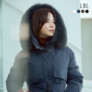 [샤틴]폭스퍼후드넥 벨티드 구스다운 롱패딩S244S855A64