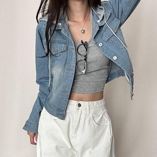여름자켓 여자 봄 가을 재킷 데님 청자켓 후드 탈부착 가능