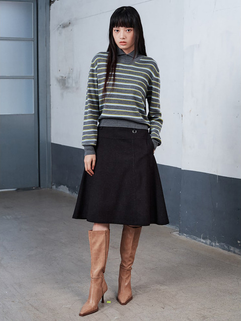 [구호플러스] Belted Wool Midi SkirtAsh (KE5X27M014)