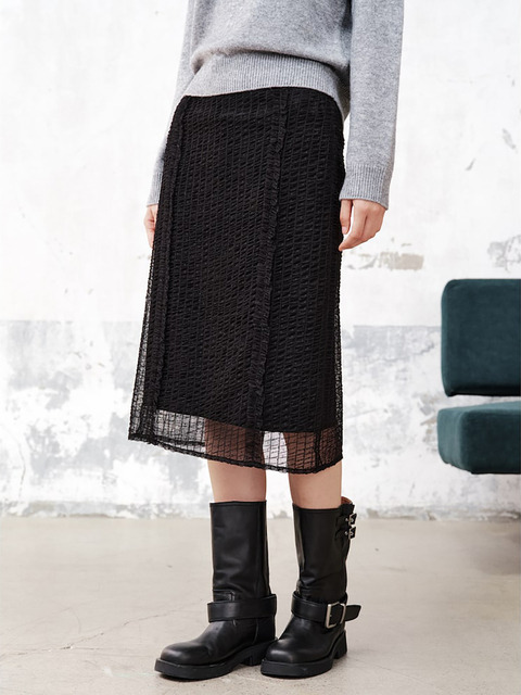 [구호플러스] Velvet Layered SkirtBlack (KE5X27M075)