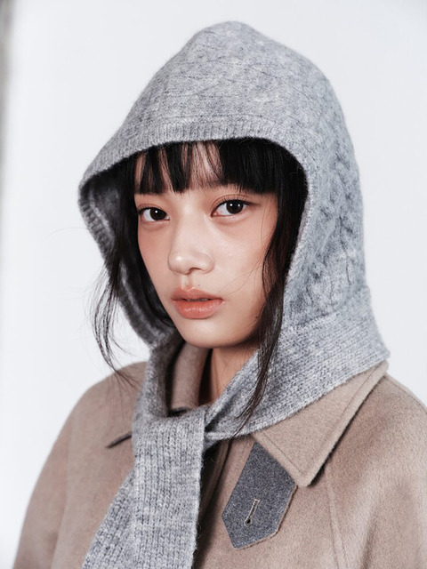 [구호플러스] Cable Knit TieUp BalaclavaGrey (KE5X5UM073)