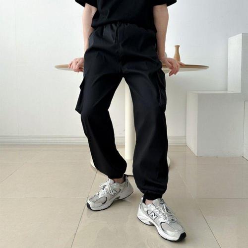 조거핏 밴딩 와이드 카고 면 작업용 군용 캐주얼 바지 WFLN0P0