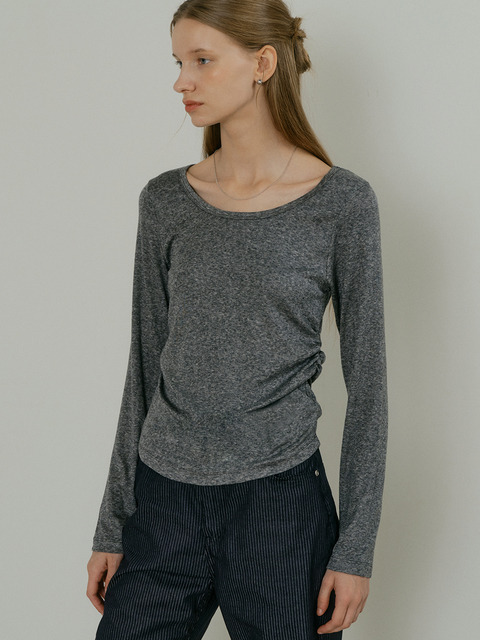 [아워코모스] 유넥 셔링 티셔츠 멜란지 그레이
