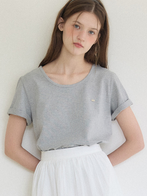 [아워호프] 로고 실키 라운드 넥 슬리브 티셔츠 - 멜란지 그레이