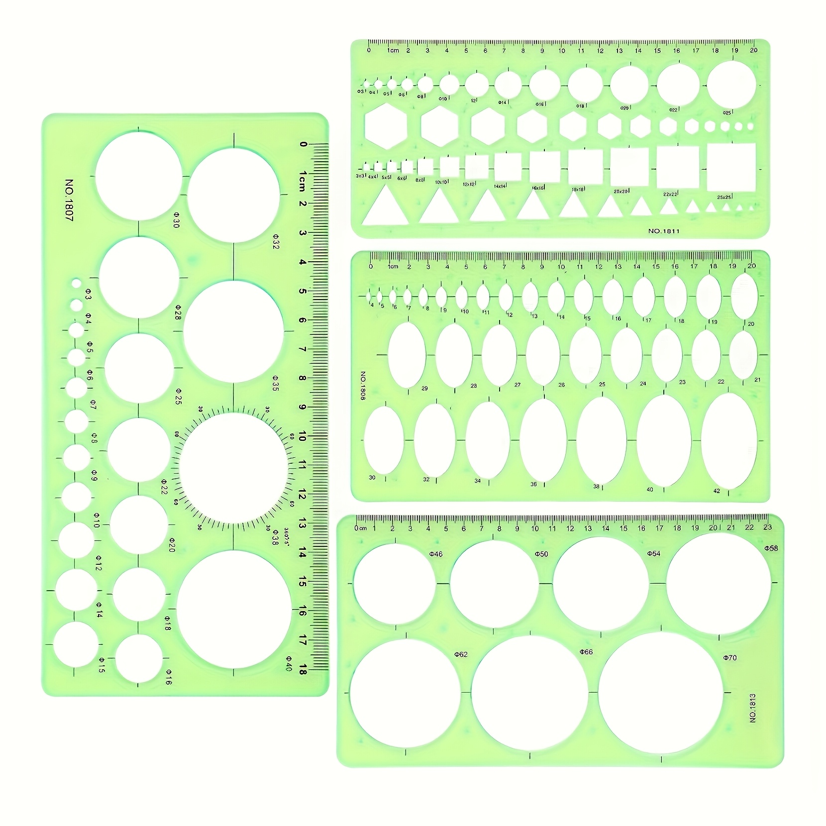 TEMU 4개 원형 스텐실 세트, 투명 측정 자 원형 템플릿, 플라스틱 원형 스텐실 (드로잉용), 큰 원, 작은 원, 타원형, 건축 템플릿, 기하학적 숫자 드로잉 도구