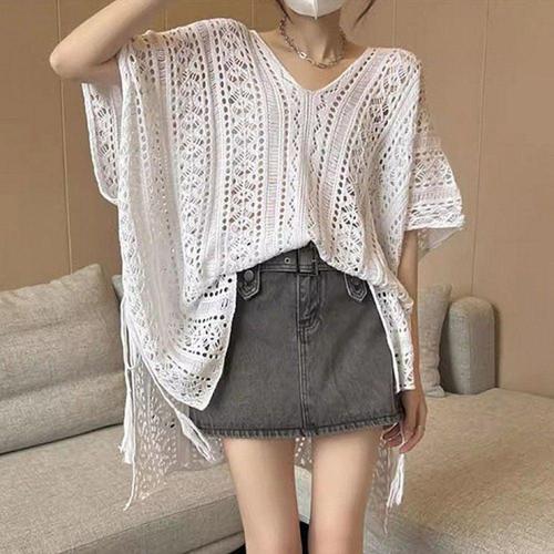 여름용 여성 그물망 니트 반팔 루즈핏 티셔츠 데일리웨어 WFL9CH9