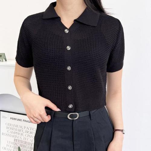 [오노마] ONM 여자 카라넥 그물망 단추 반팔 니트