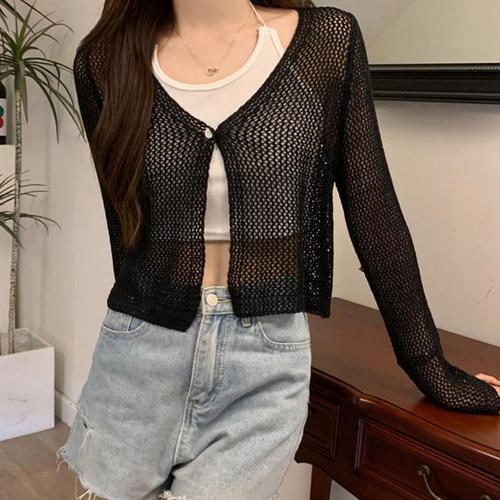 [오노마] ONM 여자 그물망 니트 가디건 짧은 배꼽