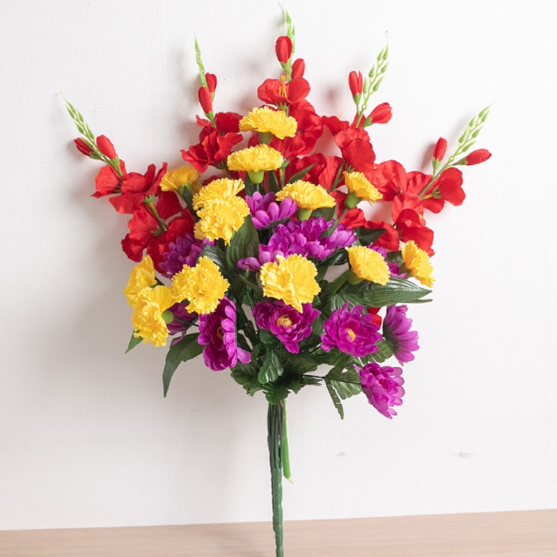 카네이션 성묘 꽃다발 조화 글라디올러스 어렌지A 78cm 납골당 산소