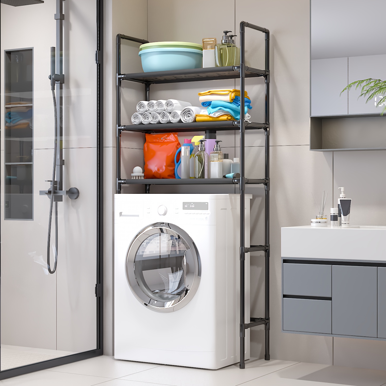 TEMU 헤비듀티 금속 화장실 선반, 세탁기 및 건조기용 오버탑 수납 선반, 세탁실 수직 스탠딩 정리대 - 공간 절약형 다목적 욕실 & 옷장 (발코니/세탁소) 천장부터 바닥까지 멀티레이어 수납, 선반, 컴팩트 선반 유닛,녹 방지 프레임,건조대,작은 공간 생활|빨래건조대|욕실선반|화장실선반