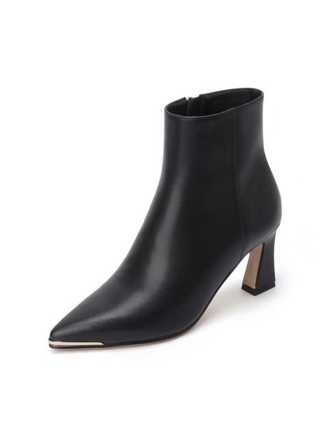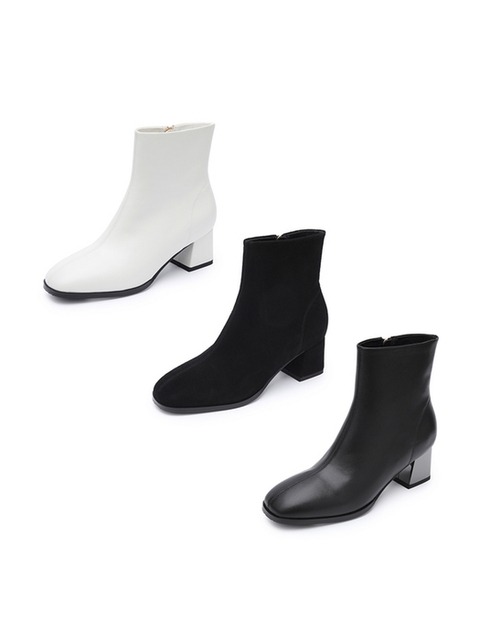 슈리오 여성 소가죽 발목 지퍼 앵클 숏 부츠 3cm