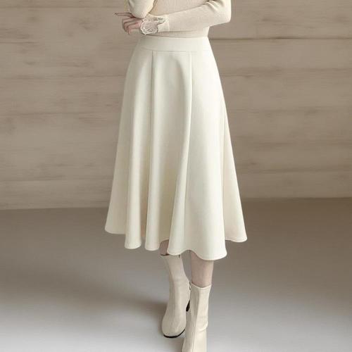 [미라클세븐]여성 겨울 데이트룩 기모 플레어 롱스커트 절개 디자인