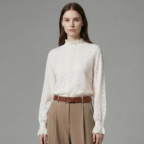 여성 반목 기모 레이스 시스루 프릴 블라우스 SIU-WBL-21013-베이지