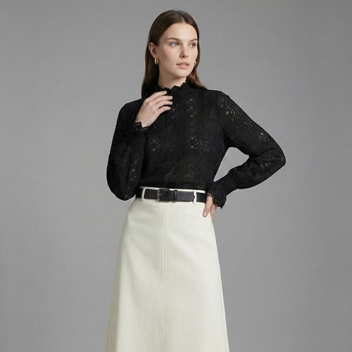 여성 반목 기모 레이스 시스루 프릴 블라우스 SIU-WBL-21013-블랙