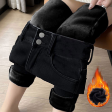 NUNUHANA 여성용 스판좋은 슬림 하이웨스트 기모 스키니진
