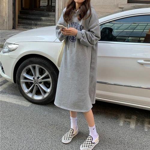 Asure 가을 겨울 여자 패션 롱 기장 후드 맨투맨 원피스 박시 빅 사이즈 캐주얼룩