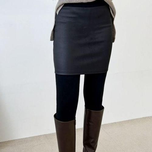 기모 밍크퍼 레자 4부치마 DJJ8056 레깅스 WD4053D