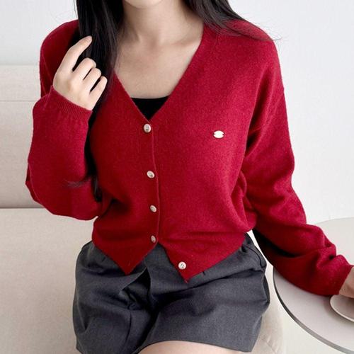 브이넥 칼라 기본 베이직 봄 긴팔 니트 가디건 WFLX6CC