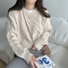 cammello 루즈핏 케이블 크롭 니트 베이직 긴팔 스웨터