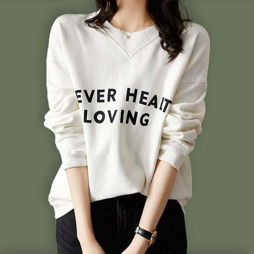 [셀럽하우스]여성 RRWG1271 봄 가을 레터링 긴팔 맨투맨 티셔츠 화이트