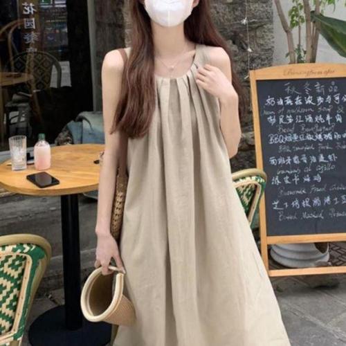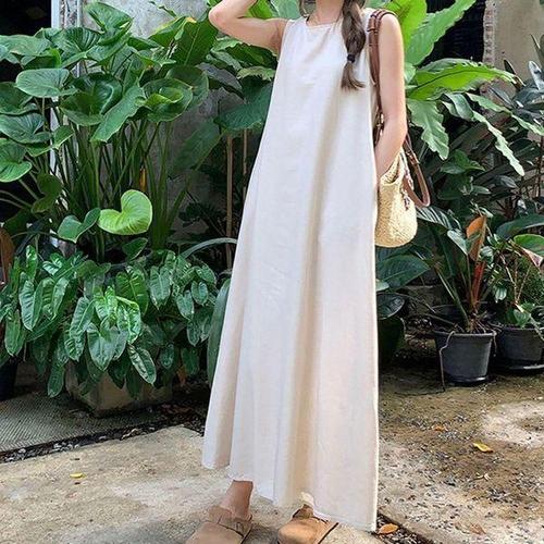 [에이치플러스몰]A라인 여성 민소매 뒷트임 심플 편한 여름 롱 원피스