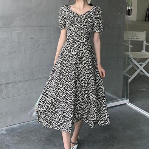 [에이치플러스몰]벌룬 소매 여성 블랙 롱 A라인 여름 원피스 하객룩