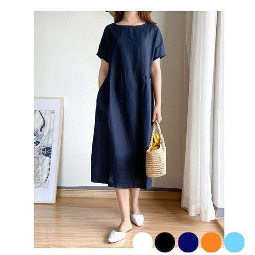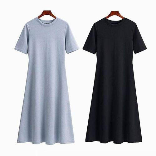 [에이치플러스몰]A라인 여성 반팔 롱 원피스 무지 심플 여름 데이트룩