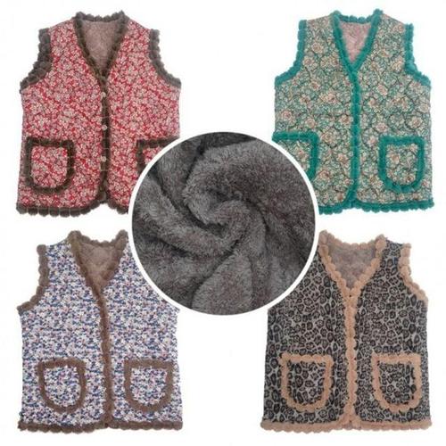 여성 겨울 털 누빔조끼 털바지 꽃무늬 방한 보온 엄마옷 할머니옷 촌캉스 김장조끼 레트로