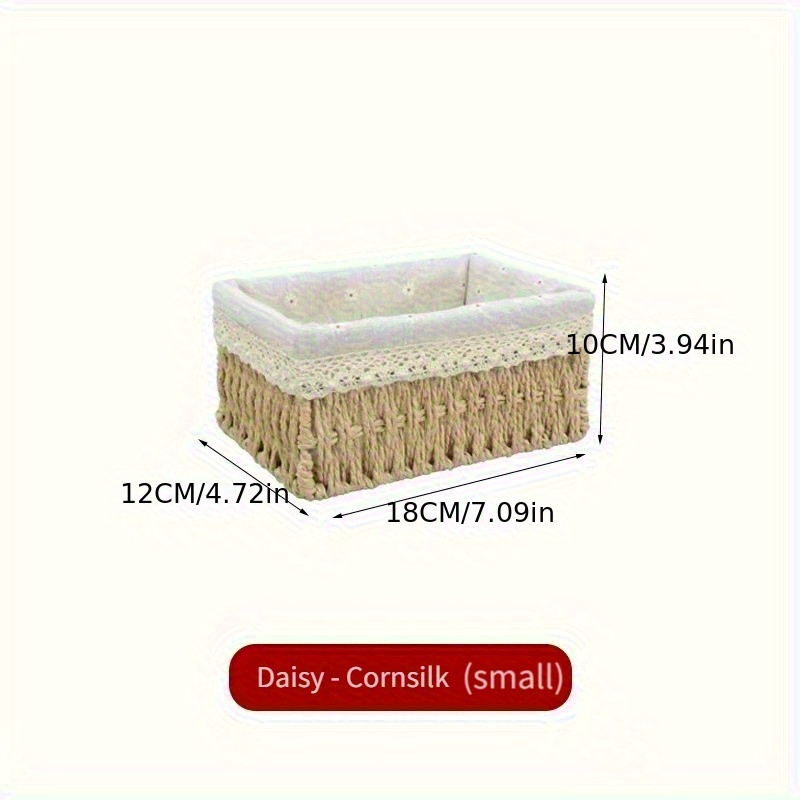 TEMU 수제 뜨개질 수납 바구니, 탈착식 레이스 안감 라탄 데스크탑 수납 바구니, 화장품 보관에 적합, 수공예 수납 바구니, 데스크탑 서랍 수납, 선물 바구니, 실내 장식, 선반 바구니, 스타일 라탄 수납 바구니